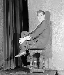 Shaw's play Arms and the Man with Alfred Lunt and Lynn Fontanne opened at the Guild Theatre in September 1925,[58][64][65] followed by Ferenc Molnár's play The Glass Slipper.[58][66][67] Lunt and Fontanne starred in many of the Guild Theatre's early plays, mostly performing together.[68][69] The couple's appearances included Goat Song, At Mrs. Beam's, and Juarez and Maximilian in 1926; The Brothers Karamazov, The Second Man, and The Doctor's Dilemma in 1927; Caprice in 1928; and Meteor in 1929. Sometimes, only one spouse appeared, such as Fontanne in Pygmalion (1926) and Lunt in Marco Millions (1928). Other plays during the 1920s included Right You Are if You Think You Are with Edward G. Robinson in 1927, as well as Faust with Helen Chandler, Dudley Digges, and George Gaul in 1928. Alice Brady, Otto Kruger, and Claude Rains performed in Karl and Anna and The Game of Love and Death in 1929, and Gale Sondergaard also appeared in Karl and Anna.[68]