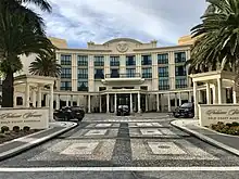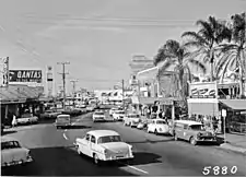After the establishment of the Surfers Paradise Hotel in the late 1920s, the Gold Coast region grew significantly.[16][17] The Gold Coast was originally known as the South Coast (because it was south of Brisbane). However, over-inflated prices for real estate and other goods and services led to the nickname of "Gold Coast" from 1950.[18][19][20][21][22] South Coast locals initially considered the name "Gold Coast" derogatory.[23][24] However, soon the "Gold Coast" simply became a convenient way to refer to the holiday strip from Southport to Coolangatta.[25][26][27][28][29] The Town of South Coast was formed through the amalgamation of Town of Coolangatta and Town of Southport along with the coastal areas (such as Burleigh Heads) from the Shire of Nerang on 17 June 1949 with the effect of having the present-day Gold Coast coastal strip as a single local government area. As the tourism industry grew into the 1950s, local businesses began to adopt the term Gold Coast in their names, and on 23 October 1958 the Town of South Coast was renamed Town of Gold Coast.[30] The area was proclaimed a city, despite the lack of a cathedral, less than one year later on 16 May 1959.[31]
