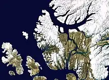 One of the larger members of the Arctic Archipelago, it is also a member of the Sverdrup Islands and Queen Elizabeth Islands. It is known for its unusual fossil forests, which date from the Eocene period.[4] Owing to the lack of mineralization in many of the forest specimens, the traditional characterization of "fossilisation" fails for these forests and "mummification" may be a clearer description. The fossil records provide strong evidence that the Axel Heiberg forest was a high-latitude wetland forest.[5]
