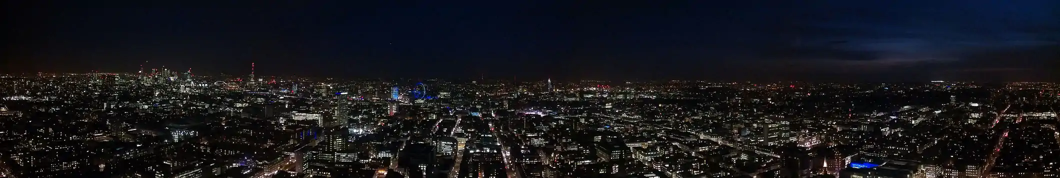 A renovation in the early 2000s introduced a 360° coloured lighting display at the top of the tower. Seven colours were programmed to vary constantly at night and intended to appear as a rotating globe to reflect BT's "connected world" corporate styling. The coloured lights give the tower a conspicuous presence on the London skyline at night.