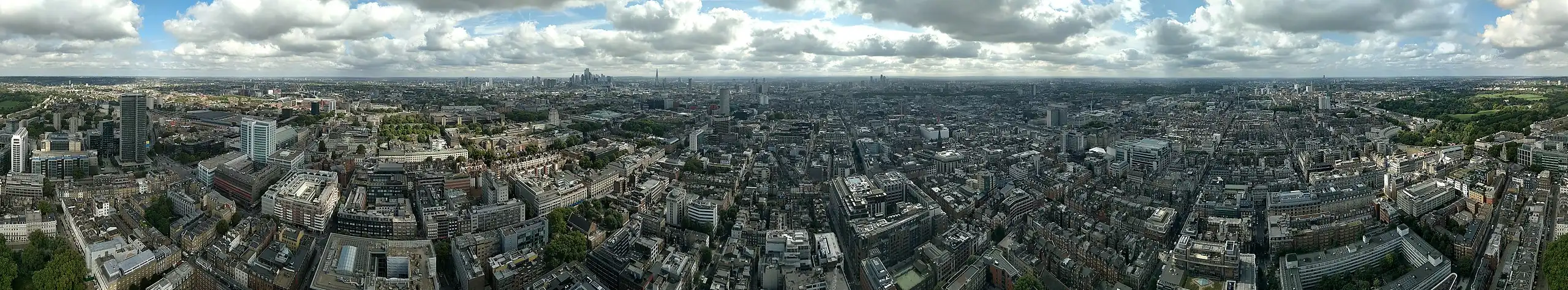 Upon completion in 1964, it overtook the Millbank Tower to become the tallest structure in London until 1980, when it in turn was overtaken by the NatWest Tower. It was opened in 1965 by Prime Minister Harold Wilson who viewed it as a monument of a Britain shimmering in the "white heat of technology".[5] A 360° coloured LED screen is located near the top of the tower—making it a conspicuous presence on the London skyline—which displays news events to the public across central London every day, including breaking news.[6][7]