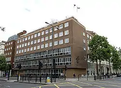 From 1974 to 2001, Baden-Powell House was the headquarters of The Scout Association, replacing their previous location in Buckingham Palace Road for which a dedicated office extension to the house was opened by the Queen in November 1976.[7][8] As the association had expanded, the staff were split between Baden-Powell House and Gilwell Park in the historic White House.[8] In 1987 elements of the building were adapted as an events and conference space, expanding the appeal of the building more broadly. In 1993, the Scout Association took the decision to relocate their headquarters and all of their staff to a new purpose-built building at Gilwell Park housing all the association's staff.[8] The decision was in part led by the deteriorating condition of the historic White House at Gilwell Park with the three phase project concluding in April 2001 when the headquarters formally moved to Gilwell House.[8] As part of this development, the adjoining office block was sold to raise funds for the new construction.[9] As the owner of Baden-Powell House, The Scout Association received at this time a net income out of the revenues of approximately £1.5 million.[10][11][12][13]