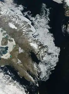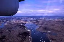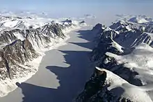 The Barnes Ice Cap, in the middle of the island, has been retreating since at least the early 1960s, when the Geographical Branch of the then Department of Mines and Technical Surveys sent a three-man survey team to the area to measure isostatic rebound and cross-valley features of the Isortoq River.[84] Although in the 1970s parts of Baffin Island failed to have the usual ice-free period in the summer.[85]