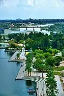 Most Iraqi reconstruction efforts have been devoted to the restoration and repair of badly damaged urban infrastructure. More visible efforts at reconstruction through private development, like architect and urban designer Hisham N. Ashkouri's Baghdad Renaissance Plan and the Sindbad Hotel Complex and Conference Center have also been made.[86] A plan was proposed by a Government agency to rebuild a tourist island in 2008.[87] Investors were sought to develop a "romantic island" on the River Tigris that was once a popular honeymoon spot for newlyweds. The project would include a six-star hotel, spa, an 18-hole golf course and a country club. In addition, the go-ahead has been given to build numerous architecturally unique skyscrapers along the Tigris that would develop the city's financial center in Kadhehemiah.[88] In late 2009, a construction plan was proposed to rebuild the heart of Baghdad, but the plan was never realized because corruption was involved in it.[89]