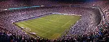 Before Charlotte FC's arrival, Bank of America Stadium was no stranger to hosting soccer matches. The stadium hosted the NCAA Men's Soccer Championship in 1999 and 2000.[77] Despite this, it took until 2010 for soccer matches to become a regular occurrence. Most matches since then have featured international teams. The International Champions Cup stages annual international club friendlies at the stadium as part of a long-term contract with Relevent Sports Group.[78] Among the clubs who have played at the stadium include clubs from the Premier League, Bundesliga and various national teams.