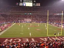 In addition to the Panthers and CLTFC, the stadium hosts the annual Duke's Mayo Bowl, which features teams from the Atlantic Coast Conference (ACC) and either the Southeastern Conference (SEC) or the Big Ten Conference. The stadium was planned to host the annual ACC Championship Game through at least 2019; the game was moved in 2016 but reinstated in 2017.[17][18][19] The ACC announced on May 19, 2022, that Bank of America Stadium would continue to host the championship through at least the 2030 season.[20] The largest crowd to ever attend a football game at the stadium was on September 9, 2018, when 74,532 fans watched the Panthers defeat the Dallas Cowboys 16–8.[21]