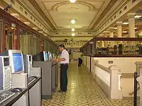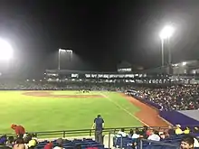 In an era of significant progress for the city, the first private commercial radio station was founded in the country, the first station being the state HJN Colombia Bogotá. Elías Pellet Buitrago started commercial radio in Colombia with the first issue of La Voz de Barranquilla on December 8, 1929.[53] On April 10, 1931, in a mutiny against hunger and unemployment, the people of Barranquilla destroyed the Theatre Columbia.[54] On August 16, 1933, the Senate approved the contract for Bocas de Ceniza and work was completed in 1936 with President Alfonso Lopez inaugurating the Maritime Terminal Barranquilla. In 1935, the construction of a municipal football stadium enabled hosting of the National Game III.