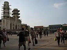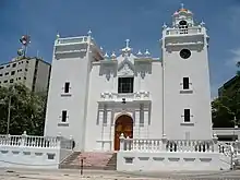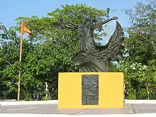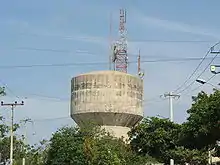 Barranquilla is also known as La Arenosa (meaning The Sandy), so named by the president of New Granada, Tomás Cipriano de Mosquera, during his stay in Barranquilla in 1849.[16] Curramba, la Bella was also used to refer to Barranquilla by journalist Juan Eugenio Cañavera in Bogotá in the mid-twentieth century.[17] The "la Bella" part was assigned by fellow journalist Roger Araújo as a counterweight to the word Curramba, which is seen as derogatory, derived from adjective "currambero". The thinker Agustín Nieto Caballero called Barranquilla "Ciudad de los Brazos Abiertos" ("City of the Open Arms") and Enrique Ancízar, president of the Colombian Society of Agriculture, called it "Faro de América" ("Beacon/Lighthouse of America.").[18]
