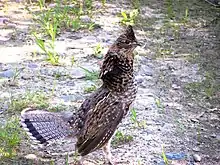A wide diversity of bird prey may be occasionally hunted by barred owls in different circumstances. Smaller or mid-sized bird prey species known have including different species, though usually a relatively low species diversity and in low numbers, beyond swallows and thrushes of tyrant flycatchers, vireos, chickadees, wrens, mimids, tanagers, other cardinalids and finches.[42][137] Somewhat higher diversity of species are known from the sparrow and warbler families.[165][168][169] Birds down to the size of the calliope hummingbird, North America's smallest hummingbird at 2.7 g (0.095 oz), may be taken by barred owls.[123] At the opposite end of passerine prey for barred owls, this species will sometimes take all ages of the American crow, from very young nestlings to adults.[7] Numerous non-passerine birds are also taken, though seldom in great numbers and of low known species diversity.[116] One exceptional family is the woodpeckers, which are probably so widely taken because of their generally overlapping habitat preferences with those of barred owls. Several species of woodpecker are preyed upon almost throughout the range, including at least a half dozen in Oregon alone, from the smallest North American species, the downy woodpecker, to the largest, the pileated woodpecker.[137][170] Other small-to-medium-sized bird species known as prey for barred owls are: mountain quail, grey partridge, rock dove, band-tailed pigeon, mourning dove, purple gallinule, killdeer, American woodcock, least tern, snowy egret,[171] cattle egret[172] and belted kingfisher. Although they take many chicks of gamebirds, adults of these species are vulnerable as well.[42] In many areas, ruffed grouse are not infrequently taken, comprising up to nearly 6% of prey items in Alberta. In Oregon, the weights estimated for ruffed grouse taken by barred owls varied enormously, from small chicks estimated at 25 g (0.88 oz), to adults weighing about 576 g (1.270 lb). Broader study in the Pacific Northwest indicated that adult ruffed grouse were mainly taken.[100][123][137][173] Barred owls are also known to take adult spruce grouse of about the same size as the ruffed grouse, as well as much larger species including the common pheasant and the sooty grouse, the latter estimated to average 1,050 g (2.31 lb) when taken.[134][137][174] Barred owls are also known to prey on the young of other, larger birds, such as the American white ibis and wild turkey.[175][176]