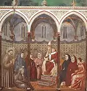 Saint Francis preaches in the presence of pope Honorius III