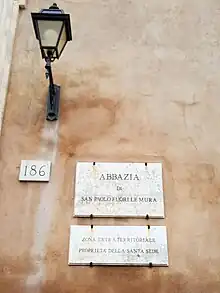 The Basilica is within Italian territory, but the Holy See owns the Basilica in a regime of extraterritoriality, with Italy recognizing its full ownership and conceding it "the immunity granted by international law to the headquarters of the diplomatic agents of foreign States".[1][2][3]
