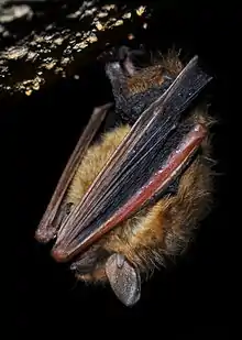 The delicate skeletons of bats do not fossilise well; it is estimated that only 12% of bat genera that lived have been found in the fossil record.[6] Most of the oldest known bat fossils were already very similar to modern microbats, such as Archaeopteropus (32 million years ago). The oldest known bat fossil is Icaronycteris gunnelli (52 million years ago). The two sets of fossils were discovered in Wyoming.[7] The extinct bats Palaeochiropteryx tupaiodon and Hassianycteris kumari, both of which lived 48 million years ago, are the first fossil mammals whose colouration has been discovered: both were reddish-brown.[8][9]