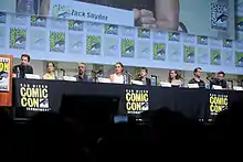 An estimated $165 million marketing effort helped promote Batman v Superman: Dawn of Justice.[180] At the 2014 San Diego Comic-Con International, Snyder introduced the film's first footage intended to be exclusive to the event.[181] A teaser trailer was scheduled to be screened in selected cinemas on April 20, 2015.[182] However, on April 16, the trailer leaked online,[183] and within a few hours Snyder officially released the trailer to Twitter.[184] At the 2015 San Diego Comic-Con International, Snyder and the cast attended to present an initial trailer of the film. While the teaser had received mixed response, the trailer was positively received by attendees, who gave it a standing ovation.[185] Mark Hughes of Forbes said the trailers "both set the stage for a story about the world's distrust and fear of Superman, Batman's rage at Superman and intention to duke it out with the Man of Steel, and Wonder Woman's participation in a big fight featuring the 'Trinity'."[186]
