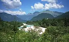 Foul weather, as well as lack of readiness in some of the Austro-Hungarian divisions and in particular of their artillery, delayed the attack for two days but on 24 October there was no wind and the front was misted over.[9] At 02:00, in the northern area of the battle (near Bovec/Plezzo) 894 metal tubes similar to Livens Projectors (Gaswurfminen), dug into a reverse slope, were triggered electrically to simultaneously fire canisters containing 600 ml (21 imp fl oz; 20 US fl oz) of chlorine-arsenic agent and diphosgene, smothering the Italian trenches in a dense cloud of poison gas. Knowing that their gas masks could protect them only for two hours or less, the defenders fled, though 500–600 were still killed.[10] Other parts of the valley were bombed with gas from common grenades. Then the front was quiet until 06:00, when all the Italian wire and trenches to be attacked were bombarded by mortars.