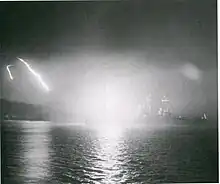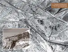 With the path to Hungnam blocked at Funchilin Pass, eight C-119 Flying Boxcars flown by the US 314th Troop Carrier Wing were used to drop portable bridge sections by parachute.[187][188] The bridge, consisting of eight separate 18 ft (5.5 m) long, 2,900 lb (1,300 kg) sections, was dropped one section at a time, using a 48 ft (15 m) parachute on each section.[189] Four of these sections, together with additional wooden extensions were successfully reassembled into a replacement bridge by Marine Corps combat engineers and the US Army 58th Engineer Treadway Bridge Company on 9 December, enabling UN forces to proceed.[190] Outmaneuvered, the PVA 58th and 60th Divisions still tried to slow the UN advance with ambushes and raids, but after weeks of non-stop fighting, the two Chinese divisions combined had only 200 soldiers left.[191] The last UN forces left Funchilin Pass by 11 December.[192]