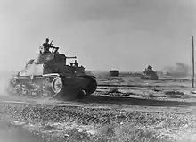 The Bir Hakeim box was defended by the 1st Free French Brigade under Marie-Pierre Kœnig. On 27 May, the Italian IX Tank Battalion of the 132nd Tank Infantry Regiment (Ariete Division), which had not been engaged in the destruction of the 3rd Indian Brigade box and had continued to advance alone at full speed, stumbled in the French positions and launched a hasty attack, which was a costly failure against the French 75 mm guns and mines.[37][38][39] On the night of 1/2 June, the 90th Light and Trieste divisions were sent south to renew the attack on Bir Hakeim, where the battle continued for another ten days.[40]