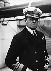 Jellicoe's ships proceeded to their rendezvous undamaged and undiscovered. However, he was now misled by an Admiralty intelligence report advising that the German main battle fleet was still in port.[38] The Director of Operations Division, Rear Admiral Thomas Jackson, had asked the intelligence division, Room 40, for the current location of German call sign DK, used by Admiral Scheer. They had replied that it was currently transmitting from Wilhelmshaven. It was known to the intelligence staff that Scheer deliberately used a different call sign when at sea, but no one asked for this information or explained the reason behind the query—to locate the German fleet.[39]