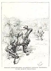 Believing himself bound by Lee's order to charge, but with his own brigades not yet in attacking position, Magruder mustered some five thousand men from Huger's brigades, including those of Ambrose Wright and Maj. Gen. William Mahone and half of the men from Armistead's brigade who were caught in the open battlefield. Magruder had also sent for Brig. Gen. Robert Ransom, Jr., also under Huger's command, who noted that he had been given strict instructions to ignore any orders not originating from Huger, and apologetically said he could not help Magruder. Magruder additionally ordered men under his personal command—three regiments of Brig. Gen. Howell Cobb's brigade, plus Col. William Barksdale's full brigade—to the attack. Because of the confusion regarding Quaker Road, however, these brigades were not yet near enough to do more than move into supporting position, and Magruder wanted to attack immediately.[53] Despite this, under Magruder's order at about 5:30 pm, Wright's brigade with Armistead's, then Mahone's brigade, started darting out of the woods and towards the Union line.[54] The artillery of the Confederate left flank, under Jackson's personal command, also renewed their barrage with the late arrival of two batteries of Richard Ewell's division.[55] The Confederates were initially engaged solely by Union sharpshooters, but the latter quickly fell back to give their own artillery a clear field of fire. Antipersonnel canister shot was employed with deadly effect. Wright's men were pinned down in a small depression on the rolling hillside, to the right of Armistead's; Mahone's were driven back into retreat in about the same area.[56] At some point during the first wave of assaults, Cobb moved into close supporting position behind Armistead. Barksdale's men were also supporting, to the left of Armistead.[57]