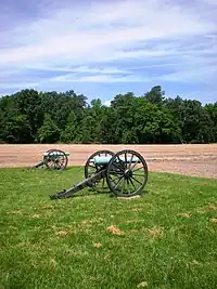 The battlefield at Malvern Hill is credited by the National Park Service as being "the best preserved Civil War battlefield in central or southern Virginia". Most recent preservation efforts there have been the consequence of cooperative efforts between Richmond National Battlefield Park and the American Battlefield Trust, formerly known as The Civil War Trust.[113] The American Battlefield Trust and its land preservation partners have acquired and preserved 1,441 acres (5.83 km2) of the battlefield in more than six transactions from 1994 through November 2021.[114] Its efforts have been bolstered by the Virginia Land Conservation Fund, the Association for the Preservation of Virginia Antiquities, and officials from Henrico County. Most of this tract wraps around the intersection of Willis Church Road and Carter's Mill Road. The land includes the starting point for the Confederate assaults on the day of the battle, the Willis Church Parsonage, the ruins of which remain visible today.[115] As of 2005, the National Park Service reported that 1,332.5 acres (5.392 km2) of land was protected on and around Malvern Hill to preserve the battlefield. Driving and walking tours, among other services, are offered at the site.[116]