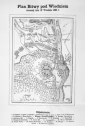 The German forces resumed the offensive on the left front at 3:30 pm. At first, they encountered fierce resistance and were unable to make progress. However, by 5:00 pm they had begun to advance and taken the villages of Unterdöbling and Oberdöbling. Imperial forces were now closing in on the central Ottoman position (the "Türkenschanze"),[45] and as they made preparations for a final push, the Polish cavalry began to take action.[28]