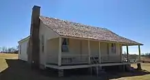 The site of the battle has been protected as Wilson's Creek National Battlefield.[30] The National Park Service operates a visitor center featuring exhibits, a fiber optic map displaying the course of the battle, and a research library.[31] Living history programs depicting various aspects of the soldier's experience of that area are presented on weekends seasonally.[32] With the exception of the vegetation and the addition of interpretive hiking trails and a self-guided auto tour route, the 1,750 acres (7.1 km2) battlefield has changed little from its historic setting, allowing visitors to experience the battlefield in nearly pristine condition. The home of the Ray family, which served as a Confederate field hospital during the battle, has been preserved and represents one of only two structures in existence during the battle to still be extant on the park today (the other being a springhouse).[33] In addition, the American Battlefield Trust has preserved 278 acres (1.13 km2) of the Wilson's Creek battlefield.[34]