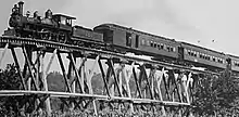 From the late 19th century until the early 20th century, Bean Station was a stop along the Knoxville and Bristol Railroad, commonly known by locals as the Peavine Railroad. The railroad was a branch line of the Southern Railway that ran from Morristown to Corryton, a bedroom community outside of Knoxville.[28] The Peavine Railroad had first operated between Morristown and Bean Station, with construction complete in 1893.[16] The completion of the railroad would influence the formation of the Bean Station Improvement Company (BSIC), a redevelopment company, led by resident and former U.S. Senator John K. Shields, with the intent to bring life back to the community.[16] The BSIC would lay the groundworks of a town street grid system, sell property for development, and pitch the community in widely distributed advertisements and brochures regarding the past, present, and future of Bean Station. The company would help fund and propose plans to further the town as an important multimodal distribution rail-and-road center, such as an extension of the Peavine Railroad across Clinch Mountain to the Cumberland Gap, and northeast to Bristol. The extension plans to both the Cumberland Gap and Bristol would not come to fruition,[16] but rail access would be extended west through Grainger County to Knoxville.[29] The Tate Springs resort located in (then) eastern Bean Station, had its peak popularity between the 1890s and 1920s when the Peavine Railroad provided passenger rail connections to the site.[30]