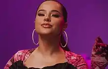 Gomez was featured on American producers Play-N-Skillz's both Spanglish and English remake versions of the 1994 song "Si Una Vez" by late Tejano singer Selena, alongside Mexican-American singer Frankie J and American rapper Kap G. The singles were released on February 24 and April 7, 2017, respectively.[66] On February 20, Gomez teased the release of her single, "Todo Cambio", after posting a photo of herself wearing a wedding dress on social media. The song was released on March 3, although its music video was filmed in Spain in 2016.[67][68] On March 24, Power Rangers was released, marking Gomez's feature film debut. She received public attention after it was revealed that her character, Trini, is queer, being the first film superhero to be from the LGBT community.[69] She collaborated with Argentine singer Axel, on the single "Que Nos Animemos", which was released on June 30, as part of his album Ser.[70] On July 8, Gomez began a countdown on Twitter for her single "Mayores", with Puerto Rican rapper Bad Bunny. The song was released as the first single from her debut album on July 14.[71][72] Gomez stated that "Mayores" will mark the beginning of a "new era". The song became a mainstream success, reaching number one in Mexico, Spain, Romania, and nine Latin American countries, while reaching the top 10 in several others. It peaked at number three on Billboard's Hot Latin Songs chart and 74 on the Hot 100 chart, while also receiving a 46x platinum by the RIAA's Latin field.[73] Its music video reached 100 million views in one month and has achieved over 2 billion since 2021. On September 8, Gomez was featured on the song "Todo Lo Que Quiero" from Yandel's fourth solo studio album #Update.[74] On September 21, it was confirmed that Gomez would be the opening act for American girl group Fifth Harmony, for the Latin American leg of their PSA Tour, with shows in Argentina, Chile, and Mexico.[75] During the group's performance in Argentina, Gomez was pulled off the stage by security after being confused for a fan when attempting to cover member Dinah Jane with the country's flag when her outfit was ripping apart.[76][77] Gomez joined Dominican-American singer and long-time friend Leslie Grace on the song "Díganle", released on September 28,[78][79] which was remixed a year later with vocals from Latin boy band CNCO.[80] Gomez also collaborated with American violinist Lindsey Stirling as the featured vocalist on the track "Christmas C'mon", from Stirling's Christmas album, Warmer in the Winter, released on October 20.[81] On October 26, she hosted along with Mexican actor Diego Boneta the Latin American Music Awards 2017 in Los Angeles, California.[82]
