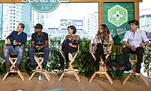 Gomez opened for Demi Lovato and Katy Perry on select dates of their Demi and Prismatic world tours (2014–15) in both the United States and Mexico.[44] Gomez featured on the song "Como Tú No Hay Dos" by Mexican singer-actress Thalía, released on January 7, 2015.[45] On March 3, she released a remix with Colombian reggaeton singer J Balvin for "Can't Stop Dancin". she released a song titled "Lovin So Hard" on April 1, along with a music video consisting of homemade footage of Gomez and Austin Mahone, whom she briefly dated.[46][47] On June 26, Gomez debuted a song titled "We Are Mexico" in solidarity with the Latin community in response to Donald Trump's remarks against illegal Mexican immigrants.[48] She also performed at a tribute concert for the late Mexican-American singer Jenni Rivera.[49] Gomez appeared as Valentina Galindo in two episodes of Empire, performing the singles "Do It" and "New, New" for the show's soundtrack.[1] She released the song, "Break a Sweat" on August 20, the fourth single to be released from her then-album.[50] Gomez embarked on a co-headlining tour with Balvin beginning on September 23 and ending on October 25; the tour spanned across the United States.[51][52] She later collaborated with Dutch DJs Yellow Claw on the songs "Wild Mustang" and "For the Thrill" from their album Blood For Mercy.[53] She released "You Love It" on October 30, as a promotional single prior to the release of her debut album.[54] That same day, Gomez was cast as Trini in the film Power Rangers (2017).[55][56]