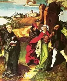 Bernard is Dante Alighieri's last guide, in Divine Comedy, as he travels through the Empyrean.[29] Dante's choice appears to be based on Bernard's contemplative mysticism, his devotion to Mary, and his reputation for eloquence.[30]