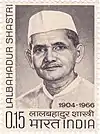 Known for his slogan "Jai Jawan Jai Kisan" ("Hail to the Soldier, hail to the Farmer"),[85] independence activist Shastri served as second Prime Minister of India (1964–66) and led the country during the Indo-Pakistani War of 1965.[55][86] |
