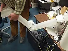 Early on in the development process, Hall and the design team took a research trip to Carnegie Mellon University's Robotics Institute, where they met a team of DARPA-funded[54] researchers who were pioneering the new field of 'soft robotics' using inflatable vinyl,[55][56] which ultimately inspired Baymax's inflatable, vinyl, truly huggable design.[47][57][58] Hall stated that "I met a researcher (Chris Atkeson[59]) who was working on soft robots. ... It was an inflatable vinyl arm and the practical app would be in the healthcare industry as a nurse or doctor's assistant. He had me at vinyl. This particular researcher went into this long pitch but the minute he showed me that inflatable arm, I knew we had our huggable robot."[60] Hall stated that the technology "will have potential probably in the medical industry in the future, making robots that are very pliable and gentle and not going to hurt people when they pick them up."