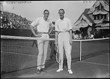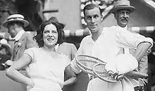 William Tatem Tilden Jr.[lower-alpha 1] was born on February 10, 1893, in Germantown, Philadelphia into a wealthy family bereaved by the death of three older siblings. His father was William Tatem Tilden, a wool merchant and local politician; and his mother, Selina Hey, was a pianist.[3] His semi-invalid mother, who suffered from Bright's disease, died when he was 18; and, even though his father was still alive and maintained a large house staffed with servants, Bill was sent a few houses away to live with a maiden aunt. The loss at 22 of his father and an older brother Herbert marked him deeply. After several months of deep depression and, with encouragement from his aunt, tennis, which he had taken up at age six or seven at the family summer house in the Catskill Mountains of Upstate New York,[4][3] became his primary means of recovery. According to his biographer, Frank Deford, because of his early family losses, Tilden spent all of his adult life attempting to create a father-son relationship with a long succession of ball boys and youthful tennis protégés, of whom Vinnie Richards was the most noted. In spite of his worldwide travels, Tilden lived at his aunt's house until 1941, when he was 48 years old.