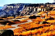 The Pictograph Caves are about five miles south of downtown. These caves contain over 100 pictographs (rock paintings), the oldest of which is over 2,000 years old. Approximately 30,000 artifacts (including stone tools and weapons) have been excavated from the site.[25] These excavations have proved the area has been occupied since at least 2600 BC until after 1800 AD.[26]