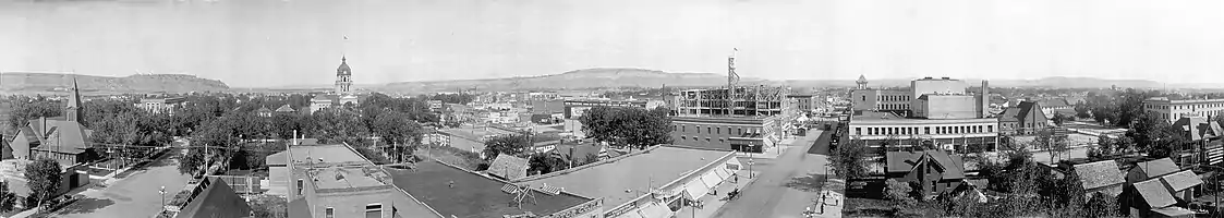 Named after the Northern Pacific Railway president Frederick H. Billings, the city was founded in 1882.[32][33] The Railroad formed the city as a western railhead for its further westward expansion. At first the new town had only three buildings but within just a few months it had grown to over 2,000. This spurred Billings' nickname of the Magic City because, like magic, it seemed to appear overnight.[30][34]