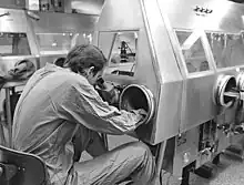 ![]() A microbiologist performing influenza research within a biosafety cabinet | |