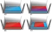 The Type A2 cabinet, formerly designated A/B3, has a minimum inflow velocity of 100 ft/min. A negative air pressure plenum surrounds all contaminated positive pressure plenums. In other respects, the specifications are identical to those of a Type A1 cabinet.[3]: 9–11 [5]