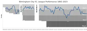 Birmingham City Football Club is a professional football club based in Birmingham, England. Formed in 1875 as Small Heath Alliance, it was renamed Small Heath in 1888, Birmingham in 1905, and Birmingham City in 1943.[9] Since 2011, the first team have competed in the EFL Championship, the second tier of English football.