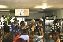 The Black Hebrews of Israel maintain a popular gospel choir, which tours throughout Israel and the United States. The group owns restaurants in several Israeli cities.[73] In 2003 the Black Hebrews garnered public attention when singer Whitney Houston visited them in Dimona.[77][78][79] In 2006, Eddie Butler, a Black Hebrew, was chosen by the Israeli public to represent Israel in the Eurovision Song Contest.[68][74]