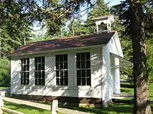 The Maintenance Historic District includes four CCC-built structures.[25] The storage building is a wood-frame structure with a gable roof, similar to military storage buildings built in the 1930s and 1940s. A three-bay garage of standard military design is included in this historic district, as was the gas pump house with an extended eave to protect the gas pumps. The Park Ranger's residence is a 1+1⁄2-story gable-roofed house, with modern vinyl siding.[25]