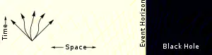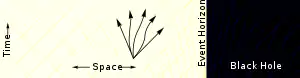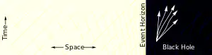 As predicted by general relativity, the presence of a mass deforms spacetime in such a way that the paths taken by particles bend towards the mass.[86] At the event horizon of a black hole, this deformation becomes so strong that there are no paths that lead away from the black hole.[87]