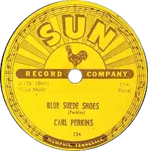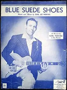 "Blue Suede Shoes" is a rock and roll standard written and first recorded by American singer, songwriter and guitarist Carl Perkins in 1955. It is considered one of the first rockabilly records, incorporating elements of blues, country and pop music of the time. Perkins' original version of the song appeared on the Cashbox Best Selling Singles list for 16 weeks and spent two weeks at the number two position.[2]