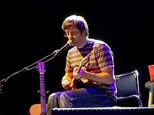 According to Mark Redfern of Under the Radar, Blur eschewed Britpop in favour of American indie rock.[16] NME magazine similarly argued that it favoured lo-fi and alternative rock over Britpop.[17] By contrast, Margaret Moser of The Austin Chronicle characterised its music as "a punchy brand of muscular Brit-pop",[18] while AllMusic's Stephen Thomas Erlewine said it "may superficially appear to be a break from tradition" but is a "logical progression" from Britpop rather than an abandonment of it.[19] Album opener "Beetlebum" has been described as a "Beatles tribute" by several publications; Erlewine wrote that the song "[runs] through the White Album in the space of five minutes."[19] Q magazine's Andrew Collins compared the song to The Auteurs as well as a "slightly menacing Free as a Bird", due to "a slight drone undulating in the foreground" and a "sweet, elongated coda busied by what sounds like an invasion of turkeys."[20] Albarn admitted that "Beetlebum" was about heroin and the drug experiences he had with his then-girlfriend, Justine Frischmann of Elastica.[21] Albarn also stated that the song describes a complicated emotion, sort of "sleepy" and sort of "sexy".[22] The song's title alludes to the phrase "chasing the beetle", a variation of the phrase, "chasing the dragon", which refers to inhaling the smoke from heated heroin, morphine, or opium that has been placed on a piece of tin-foil.[23] "Song 2" is notable for its hook which features Albarn yelling "woo-hoo!" The song's intro has been called Coxon's "finest moment".[24]