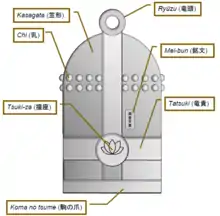 - Ryūzu (竜頭), the dragon-shaped handle at the top of the bell, by which it is carried or hung