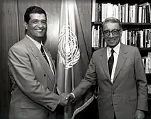 Boutros-Ghali's political career developed during the presidency of Anwar Sadat. He was a member of the Central Committee of the Arab Socialist Union from 1974 to 1977. He served as Egypt's Minister of State for Foreign Affairs from 1977 until early 1991. He then became Deputy Minister for Foreign Affairs for several months before moving to the UN. As Minister of State, he played a part in the peace agreements between President Sadat and Israeli prime minister Menachem Begin.[10]