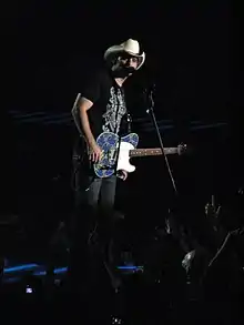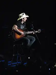 Bradley Douglas Paisley (born October 28, 1972) is an American country music singer, songwriter, and guitarist. Starting with his 1999 debut album Who Needs Pictures, he has released twelve studio albums and a Christmas compilation on the Arista Nashville label, with all of his albums certified Gold or higher by the RIAA.[1] He has scored 35 Top 10 singles on the US Billboard Country Airplay chart, 20 of which have reached number one. He set a new record in 2009 for the most consecutive singles (10) reaching the top spot on that chart.