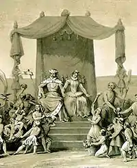 On 28 January, Augustus the Strong congratulated Frederick, yet not as Polish king, but as Saxon elector.[52] In February, Denmark–Norway accepted Frederick's elevation in hope of an ally in the Great Northern War, and the Tsardom of Russia likewise approved in 1701.[53] Most princes of the Holy Roman Empire followed.[55] Charles XII of Sweden accepted Frederick as Prussian king in 1703.[53] In 1713, France and Spain also accepted Frederick's royal status.[55]