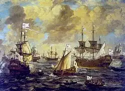 In 1672, the Franco-Dutch War broke out, with Brandenburg-Prussia involved as an ally of the Dutch Republic. This alliance was based on a treaty of 1669, and resulted in French occupation of Brandenburg-Prussian Cleves.[38] In June 1673, Frederick William abandoned the Dutch alliance and concluded a subsidy treaty with France, who in return withdrew from Cleves.[38] When the Holy Roman Empire declared war on France, a so-called Reichskrieg, Brandenburg-Prussia again changed sides and joined the imperial forces.[38] France pressured her ally Sweden to relieve her by attacking Brandenburg-Prussia from the north.[39] Charles XI of Sweden, dependent on French subsidies, reluctantly occupied the Brandenburgian Uckermark in 1674, starting the German theater of the Scanian War (Brandenburg-Swedish War).[39] Frederick William reacted promptly by marching his armies from the Rhine to northern Brandenburg, and encountered the rear of the Swedish army, which was in the process of crossing a swamp, in the Battle of Fehrbellin (1675).[40] Though a minor skirmish from a military perspective, Frederick William's victory turned out to be of huge symbolic significance.[41] The "Great Elector" started a counter-offensive, pursuing the retreating Swedish forces through Swedish Pomerania.[42]