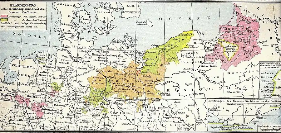 ![]() Brandenburg-Prussia within and outside of the Holy Roman Empire (1618) | |||||||||||||||||||||||||||||