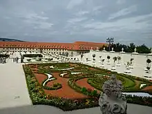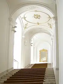 Because the governor did not have enough space, a new palace (later called the Theresianum) was built at the eastern wall of the castle building in 1767 - 1770. It had been designed by F. A. Hillebrandt in the classic style. Its furnishings were very expensive and precious and included hundreds of objects of art. The first floor was home to a family gallery, which later became the basis of today's Albertina Gallery in Vienna.[2]