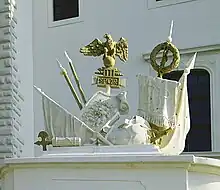 To the west of the main building, is the newly reconstructed F. A. Hillebrandt building which dates from 1762 and was destroyed by the 1811 fire. The Yard of Honor is the space directly before the castle entrance dates from the late 18th century.